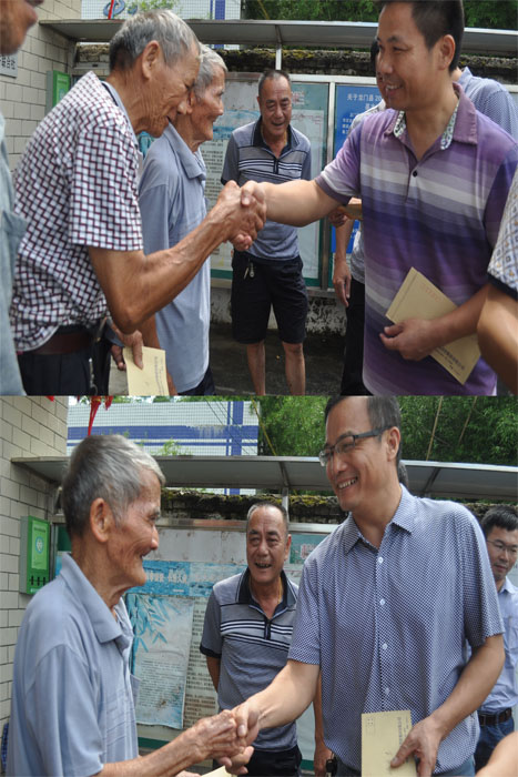 座谈会后举行了简单的捐资仪式,杨翠忠副书记、刘哲副总经理和陈伟明书记向老党员、困难党员一一发放慰问金并送上节日的祝福。两单位共捐资15000元支持花围村电灌站建设。