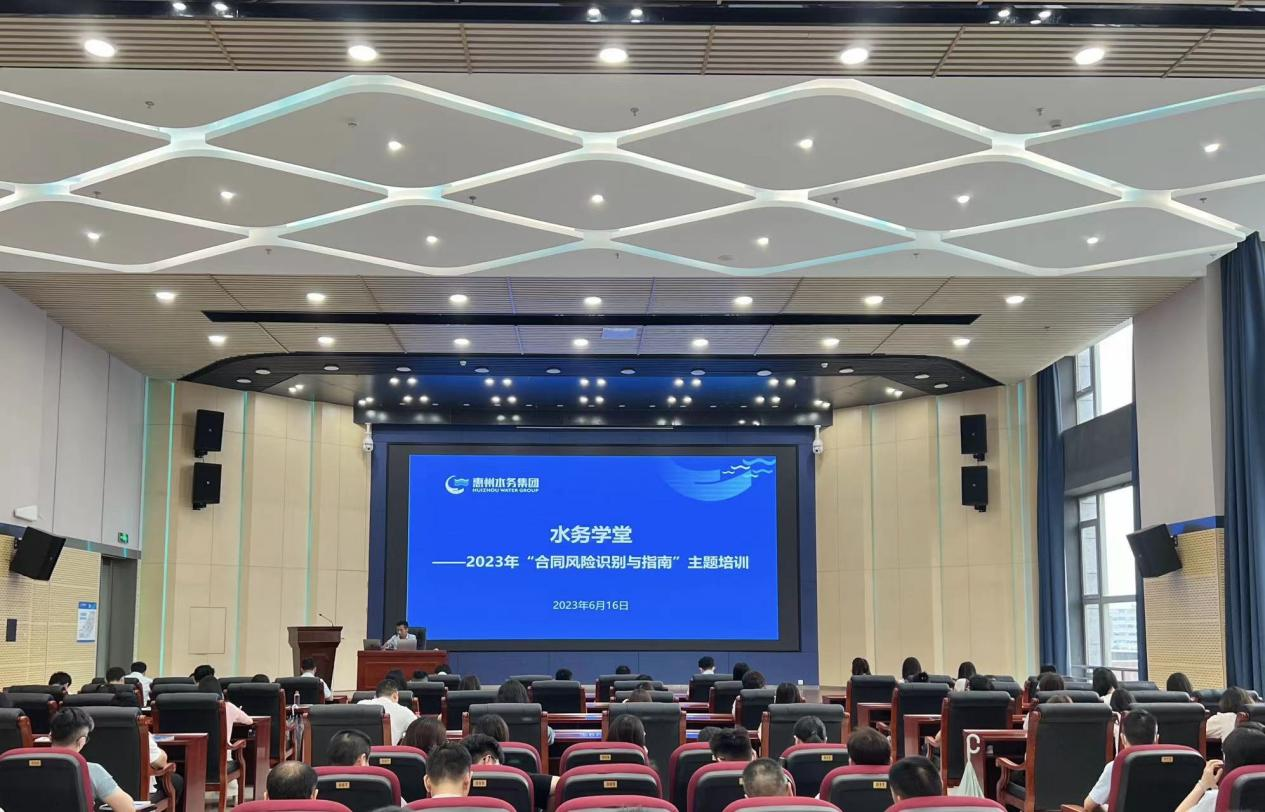 为贯彻落实党的二十大精神,深入学习宣传贯彻习近平法治思想,提升企业合同风险防范能力,6月16日,由市水务集团统筹、市供水公司主办的“合同风险识别与指南”主题培训在水务调度中心3楼举办。培训特邀广东伟伦(广州)律师事务所高级合伙人黄睿律师主讲,集团及所属二级企业160多名员工参加了培训。