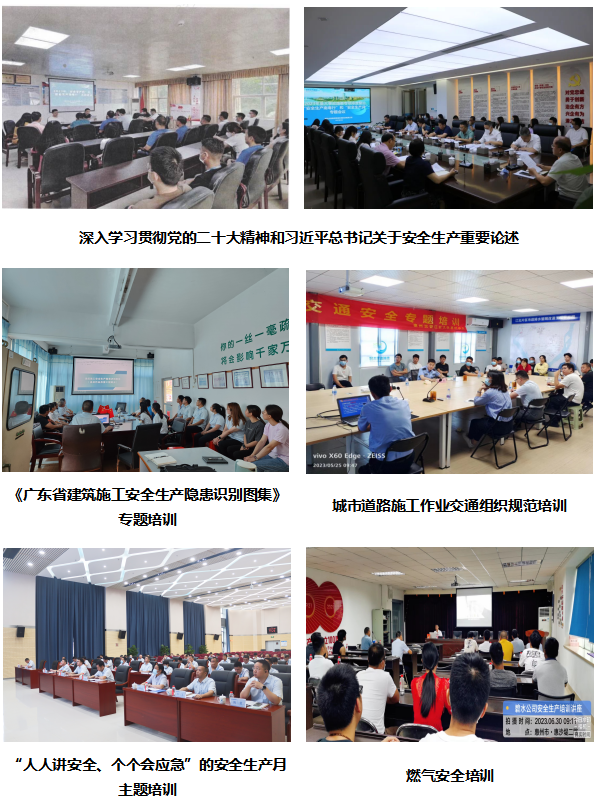 5月,集团制定《惠州市水务集团2023年“安全生产月”和“安全生产南粤行”活动方案》,从宣传教育、应急演练、隐患排查、安全知识竞赛等各方面开展活动。同时,集团召开重大事故隐患专项排查整治2023行动工作部署会,做好部署,要求全面彻查事故隐患,切断事故演变链条。