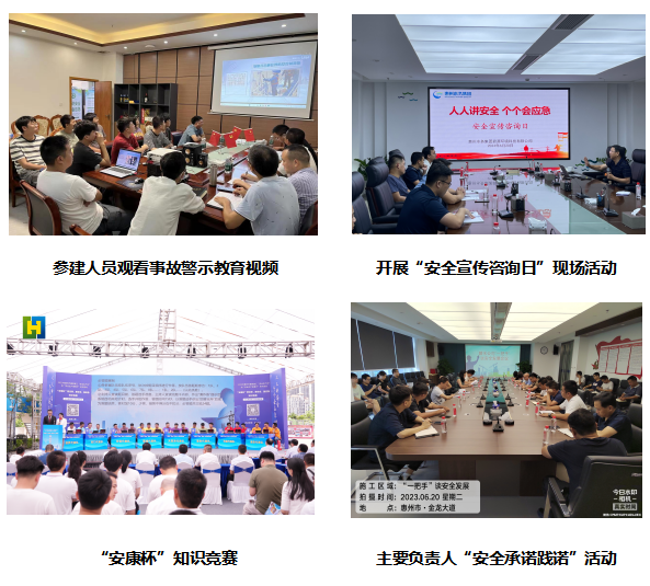 集团积极参与安全生产网络知识竞赛,组织参与人数173人,答题446次,发布视频3个。参与拍摄制作科普宣传片《惠州市工程建设领域有限空间作业及应急演练示范视频》,积极普及安全生产常识。承办惠州市建筑施工“安康杯”知识竞赛,吸引23万余人观看,集团所属市水电建筑公司荣获本次“安康杯”知识竞赛最佳组织奖。开展企业主要负责人“安全承诺践诺”活动10场,参与171人次,推动企业主要负责人严格履行安全生产职责,带头尊法、学法、守法。