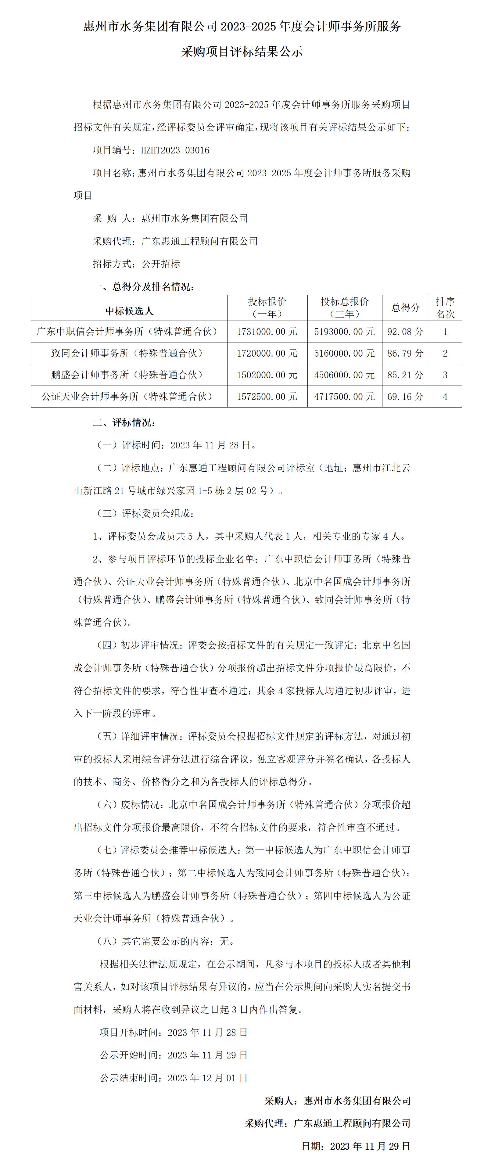 H视频 2023-2025年度会计师事务所服务采购项目评标结果公示.pdf