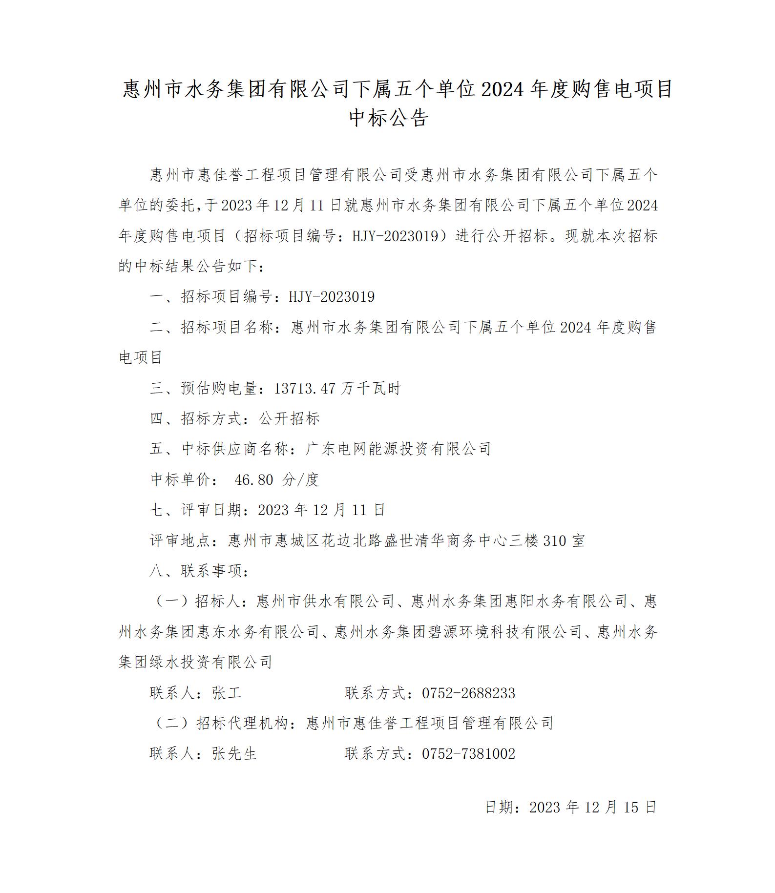 H视频 下属五个单位2024年度购售电项目中标公告.pdf