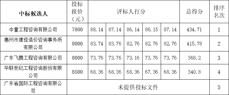 2、参与项目评标环节的投标企业名单:中量工程咨询有限公司、惠州市建佳造价咨询事务所有限公司、华联世纪工程咨询股份有限公司、广东飞腾工程咨询有限公司。