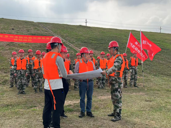 近日,市三防办在惠州大堤西枝江段开展2025年惠州市防汛救灾应急演练,市水电司作为市防汛机动抢险队参与“堤防管涌抢险”科目演练。