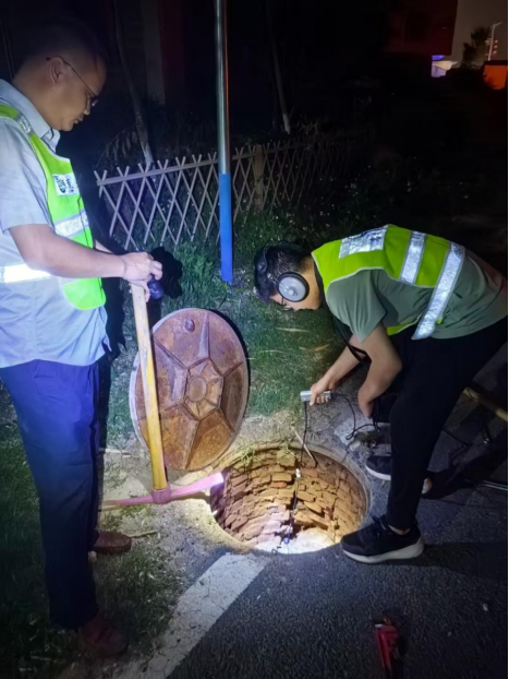 为彻底解决这一难题,市供水公司集结业务骨干组成了专项排查队伍。为了不影响用户用水,同时排除杂音干扰更准确听音,4月22日凌晨1时,队伍兵分两路,采取分段分区的策略开展排查。南方的初夏,蚊虫肆虐,队员们忍受着蚊虫的叮咬,不放过路边沟渠、附近水塘等任何一个可能的角落。历经5小时地毯式筛查后,工作人员最终在一处田地小暗沟里,从听音杆中听到丝丝的水声。原来,由于老化,该处供水管道出现了一个不小的漏点,正是这个漏点导致了上述区域水压下降。