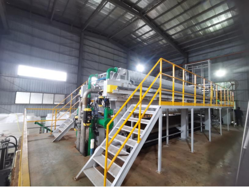 6月16日,该项目首台高压板框压滤机已顺利完成安装。6月17日上午,集团副总经理、碧源公司董事长黄立晓带队前往民亨公司视察设备进料压榨试机工作。经调试,设备运行正常、出泥效果良好,待进一步调试稳定后即可正式投产,并按计划逐步更换旧设备。