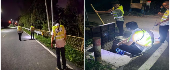 由于围仔村面积较大,工作人员历经多轮实地探漏,未能发现漏点。为此,市供水公司汝湖分公司组织维修、工程和营销工作人员,利用夜间用水低峰期开展排查工作。通过分段关闭支管阀门、对比流量和压力变化,逐步缩小漏水点范围。5小时分段式筛查后,该村一条DN150供水管道漏水点终被锁定。发现漏点后,工作人员迅速组织抢修作业,及时修复。经系统监测显示,该片区夜间最小流量降至35m³/h。