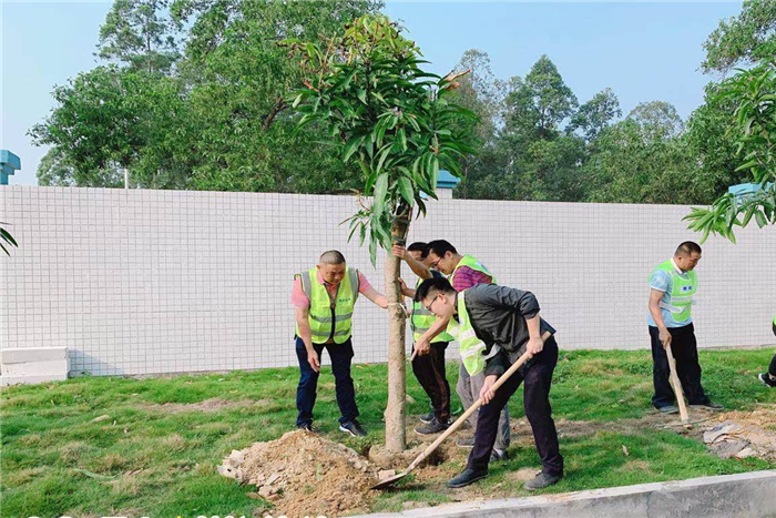 植树现场,在支部书记叶永强的带领下,大家热情高涨,干劲十足,分工合作,充分发扬不怕脏、不怕累的精神,挥锹铲土、扶正树苗、培实新土,满怀欣喜地种下一株株新苗,每个环节都衔接有序、配合默契,生动展示了党员干部争做生态文明建设先锋的良好形象。经过一番辛勤劳动,数十株芒果树在春日里迎风而立、生机盎然,成为新圩供水分公司一道亮丽的风景线。