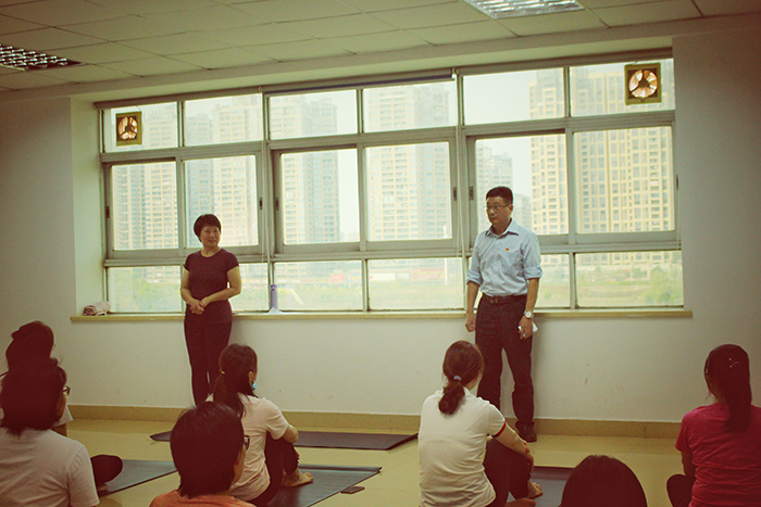 为办好这次活动 ,公司特邀曾冬梅老师来进行辅导,曾老师练习瑜伽12年,执教6年,获得了全美联盟RYT200教师培训证书。这次开班共有24名女职工参加,平均年龄35岁,最大51岁。