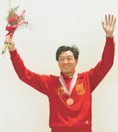 许海峰,1957年出生于福建漳州市,1972年随家人回到安徽原籍,落户在和县新桥镇。1982年进入安徽省射击队,1983年进入国家队参加奥运集训。1984年7月29日,洛杉矶奥运会上,许海峰夺得冠军。颁奖仪式上,《义勇军进行曲》第一次奏响在奥运赛场,闻讯赶到射击场的国际奥委会主席萨马兰奇将金牌佩戴在许海峰的胸前,他激动地说:“这是中国体育史上伟大的一天,我为能亲自把这枚金牌授给中国运动员而感到荣幸。”