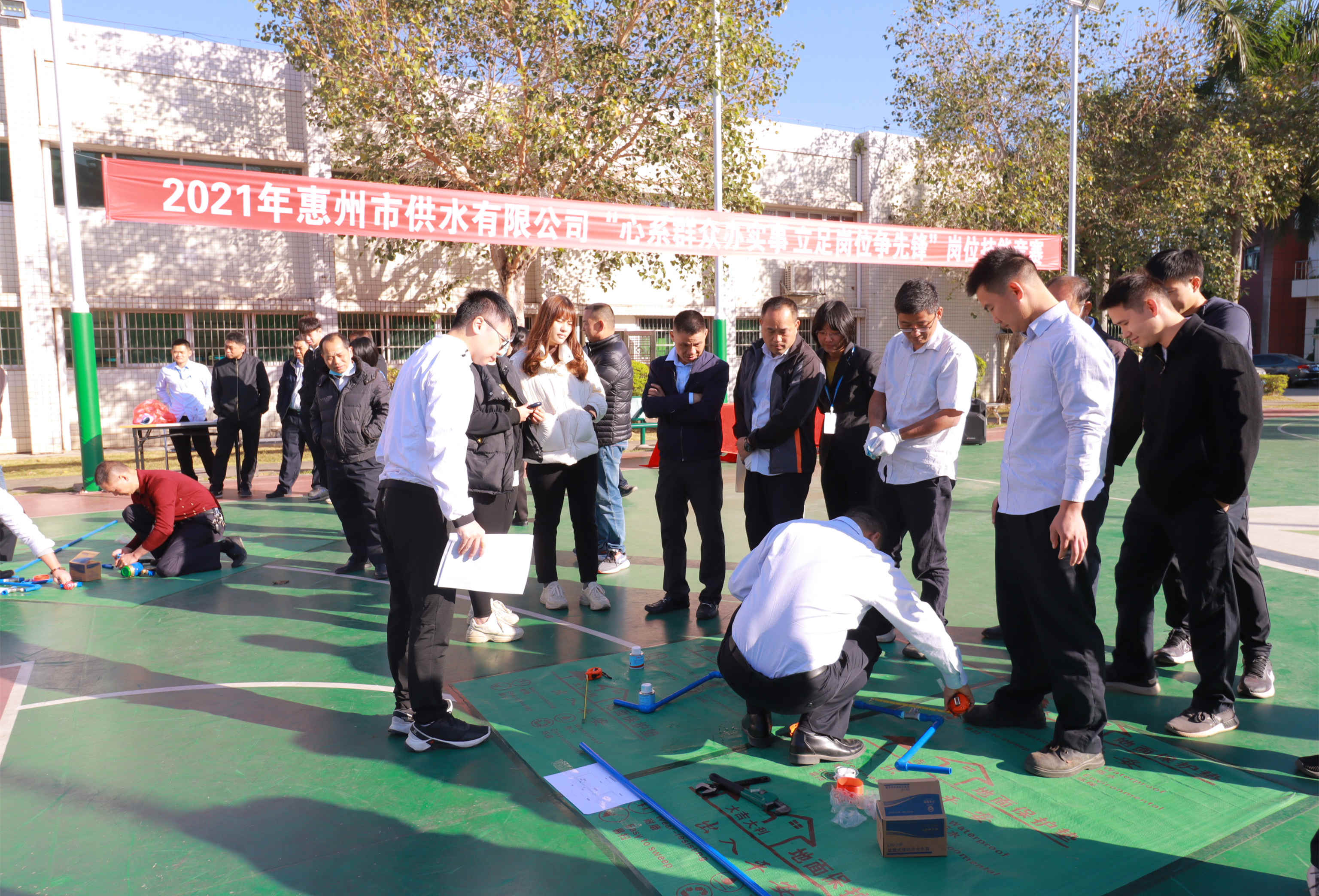 12月1日上午,市供水公司在水务调度中心篮球场举办以“心系群众办实事 立足岗位争先锋”为主题的岗位技能竞赛活动,共有70多名员工组成36个参赛队参与了角逐。
