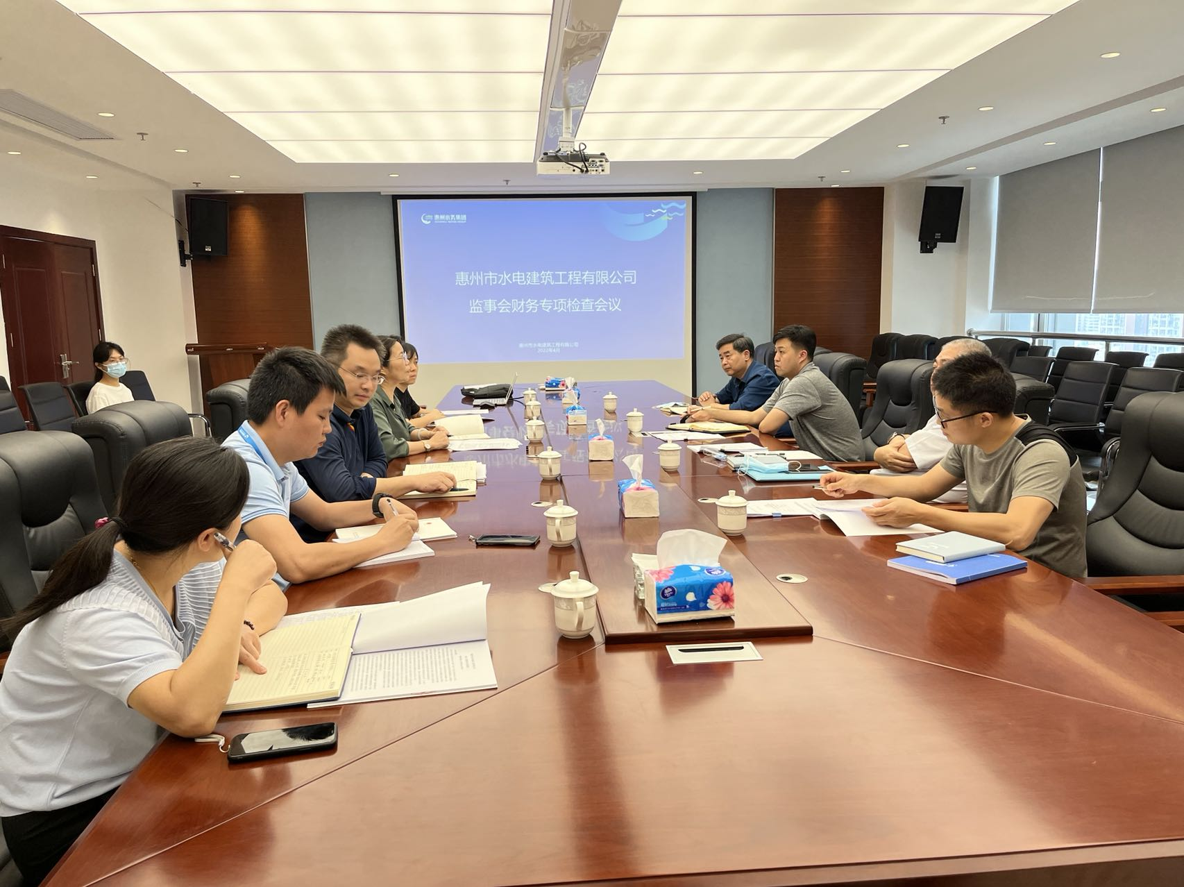 4月24日下午,惠州市水电建筑工程有限公司第三届监事会第三次会议暨财务专项检查会议在水务调度中心1419室召开。会议由监事会主席吴文辉主持,集团委派监事,职工监事,监事会办公室、财务部相关负责人,会计师事务所相关人员共12人参加了会议。