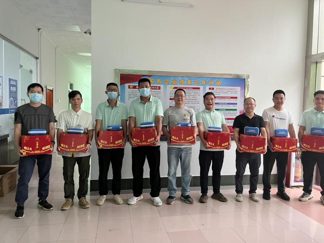 中心各事业部领导为一线职工送上清凉饮料和含有应急救护手册、消毒酒精、风油精、驱蚊水等物品的防暑降温包,这是中心特意定制的,旨在全方位保障一线职工外出作业安全。