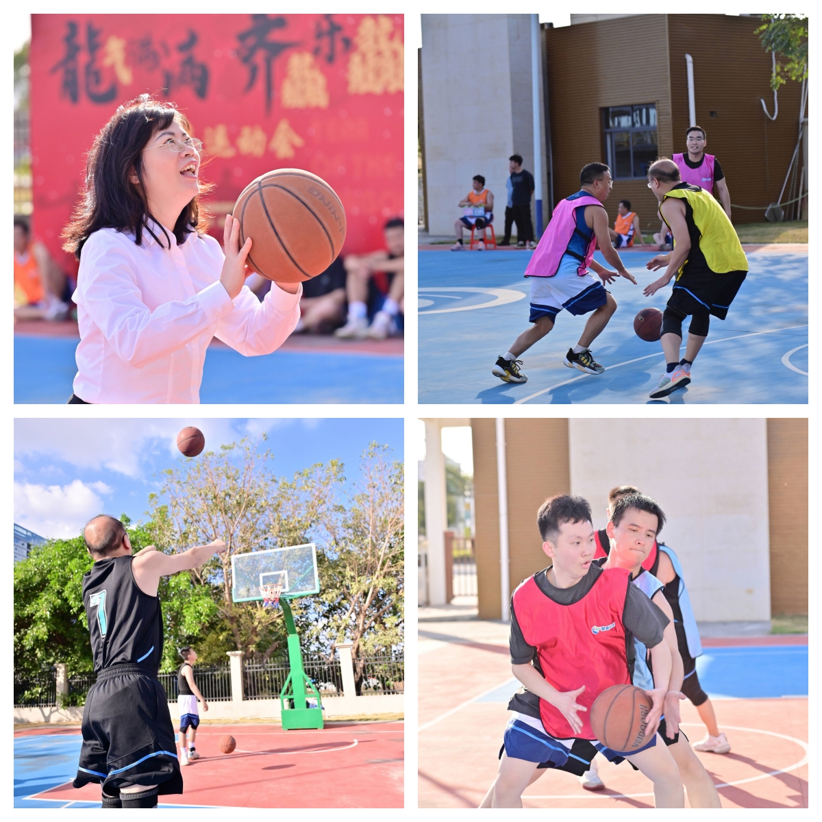 随着欢快的热身操音乐响起,运动员们开始热身,令人期待的篮球运动会也随之正式拉开了帷幕。篮球运动会包含单人赛和团队赛两种形式,其中单人赛有男子单人三分球大赛和女子趣味投篮赛,团队赛为3V3篮球对抗比赛。比赛过程既趣味横生,也不乏有激烈的竞技较量。球员们展现出顽强的斗志和出色的技战术,在团队合作和比赛过程中提升了彼此的默契和配合度,让现场观众见证了一场精彩纷呈的比赛。